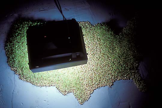 Watered peas grow without soil. They consume only the matter inside themselves. They lean toward the energy of the only light source, primetime programming playing on a television suspended above them. Primetime is like meal time. Some internal signal tells us to sit down and take it in. Why do we return night after night to the TV trough?