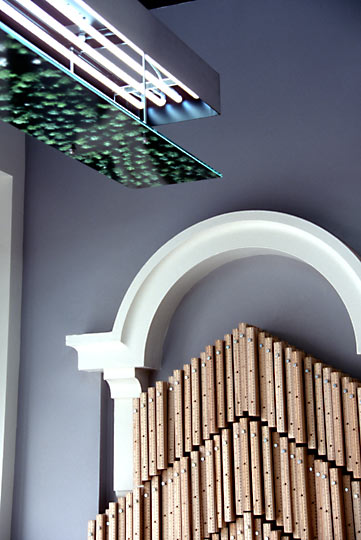Wooden rulers, photo. murals, neon