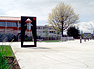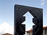 The sun dial marks noon every day, quietly remembering the air raid siren that used to sound very loudly every day at that time. The shape cutout of the sundial is the silhouette of the old siren. The bell sounds a single 'ding' at noon, rain or shine, in sync with the U.S. Atomic Clock in Colorado.