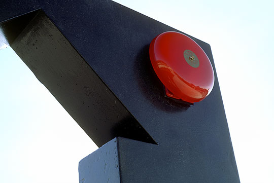 Polished and sandblasted concrete, fire bell, and timer