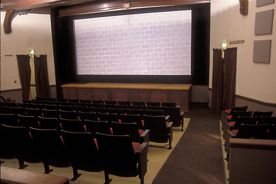 A sequence of 64 images of windowless portions of exterior building walls projected at actual size on a movie theatre screen between films. The sequence contains no depth and no story, serving as a saltine before the journey on the same screen into the feature film's illusion of time, space, and empathy.
