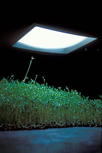 Watered peas grow without soil. They consume only the matter inside themselves. They lean toward the energy of the only light source, primetime programming playing on a television suspended above them. Primetime is like meal time. Some internal signal tells us to sit down and take it in. Why do we return night after night to the TV trough?